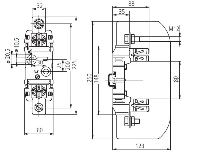 PORTAFUSIBILI UNIPOLARE NH - GRANDEZZA 2