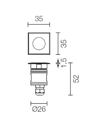 Apparecchio a incasso da esterno o interno; 2W - 24Vdc; 1 power LED; 88Lm 3000K; CRI: >80; ottica: L (40°); corpo in Acciaio Inox AISI 316L, ghiera in Acciaio Inox AISI 316L di spessore 10mm, schermo in vetro extrachiaro temprato con trattamento antigraffio di spessore 6mm; finitura: Acciaio Inox AISI 316L; temperatura di esercizio: -10°C +45°C; temperatura vetro: max 40°C (Ta 25°C); dotato di sistema IPS (utilizzare corrugato Ø20 min); grado di protezione contro i liquidi e i corpi solidi: IP68; grado di resistenza all'impatto IK08; sicurezza fotobiologica: gruppo rischio 1 secondo EN62471:2006; montaggio con cassaforma WC0201/WC0202, accessorio ghiera con molle WG0300 per installazione su pannellature, cartongesso; classe di isolamento III; peso 0,20kg; dimensioni ø35x52mm; foro d'incasso ø30mm; volume d'ingombro cassaforma Ø80x79mm; collegamento in parallelo, con cavo 1,5m tipo H05RN-F 2x0,75 Ø6,7mm; dimmerazione disponibile mediante dimmer in tensione; accessori disponibili: cassaforma WC0201/WC0202,molla WG0300 (spessore minimo 5mm), nido d'ape WH0101.