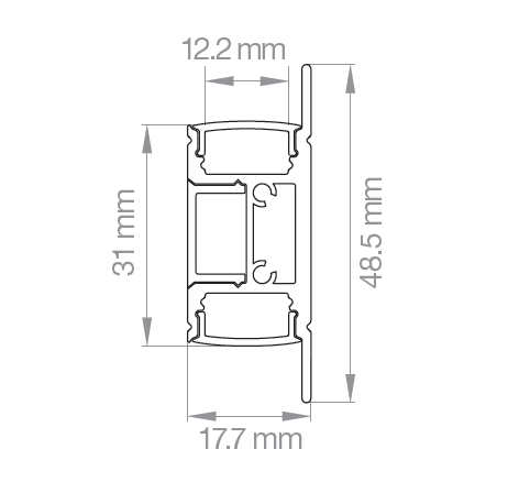 KIT PROFILO UP & DOWN - Profilo alluminio “up & down“ L. 2 mt per strisce led completo di accessori, confezionato singolarmente con nr. 1 diffusore opaco in policarbonato, nr. 2 tappi chiusi, nr. 1 tappo con foro, nr. 4 clips di fissaggio il tutto incluso nella confezione. Potenza MAX consigliata 24w/ml. Finitura: Alluminio.