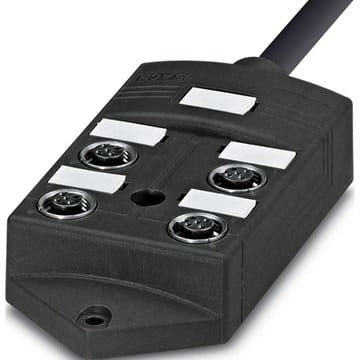 Scatole di distribuzione passive con slot M12 e cavo master a installazione fissa in una custodia completamente sigillata per il cablaggio strutturato di sensori e attuatori