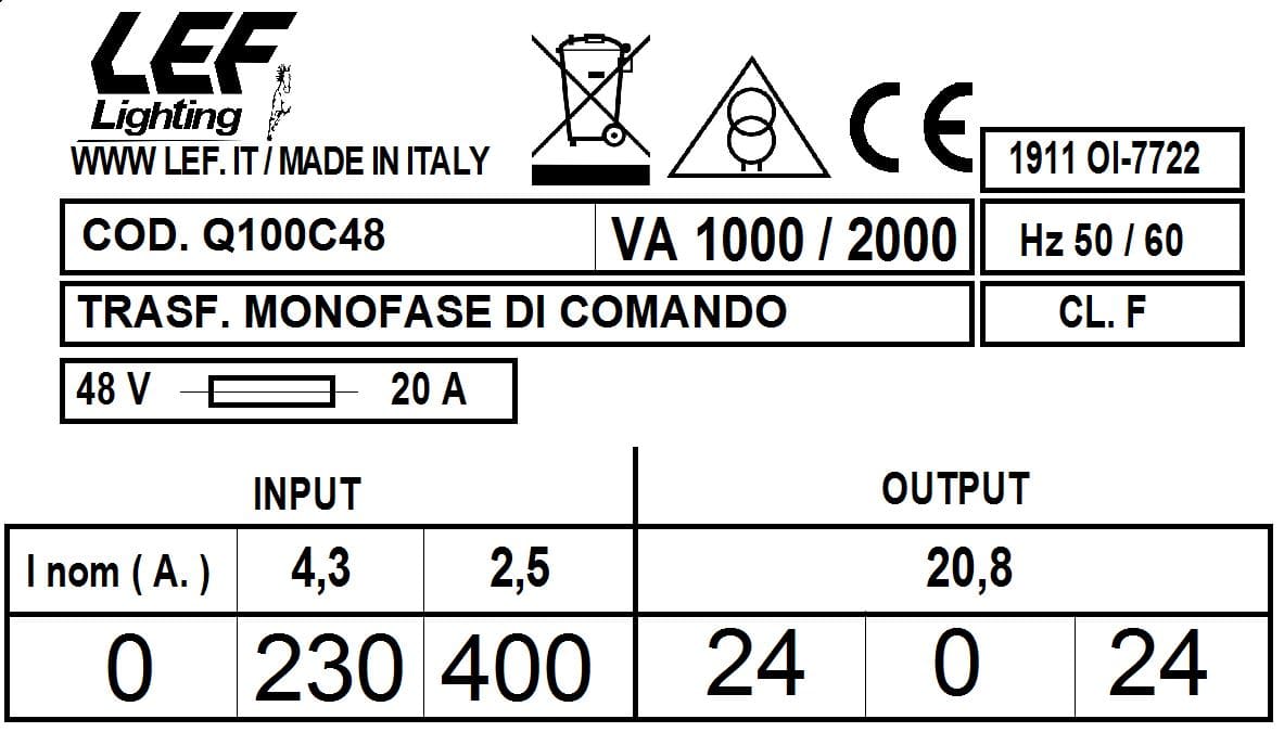 L.E.F. SRL - LEFQ100C48 T.M. 1000VA 230.400V / 24.0.24V