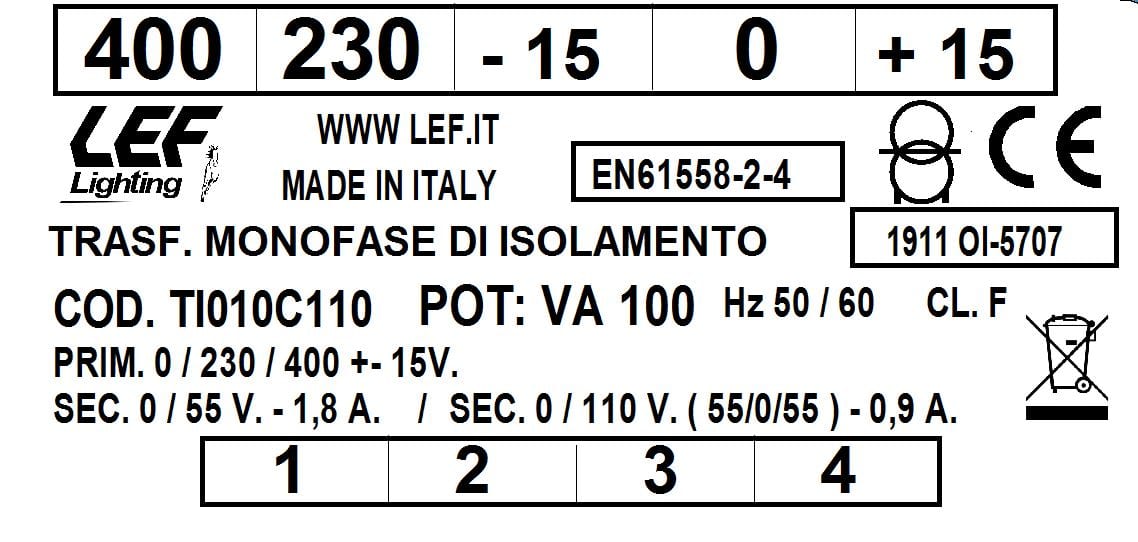 L.E.F. SRL - LEFTI010C110 T.M. 100VA 230.400V / 55?110V