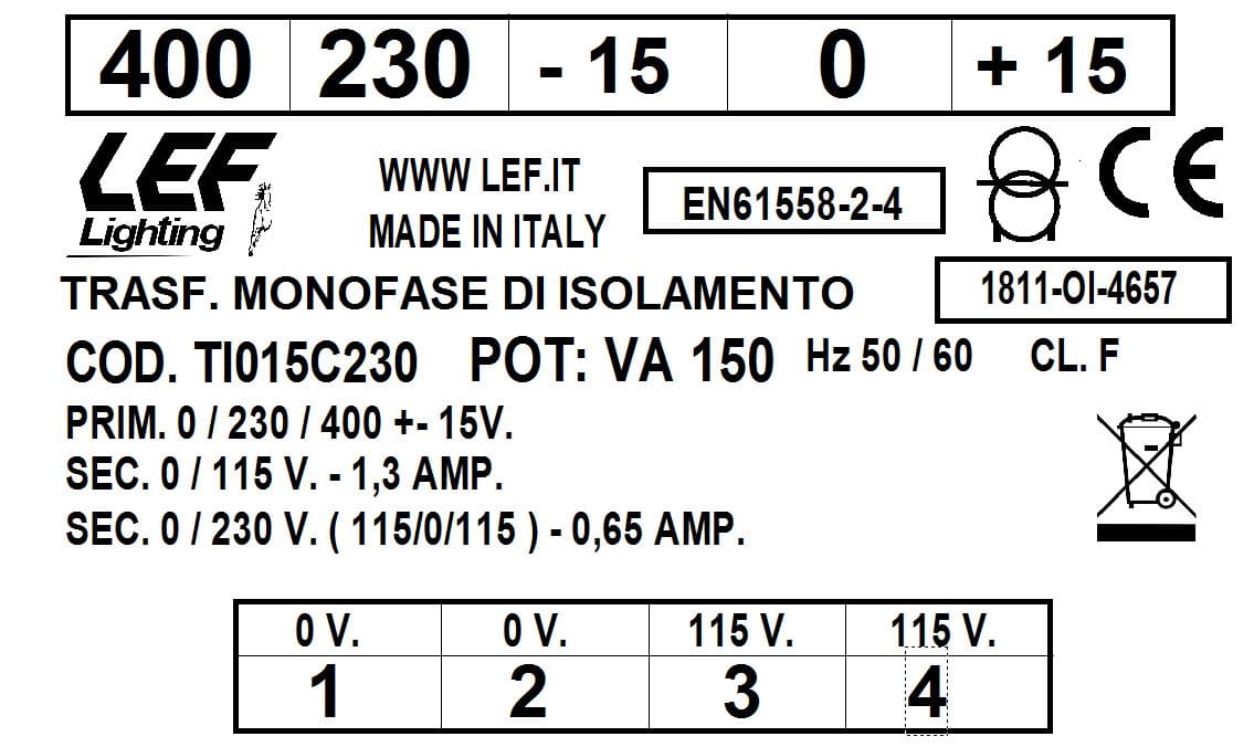 L.E.F. SRL - LEFTI015C230 T.M. 150VA 230.400V / 115?230V