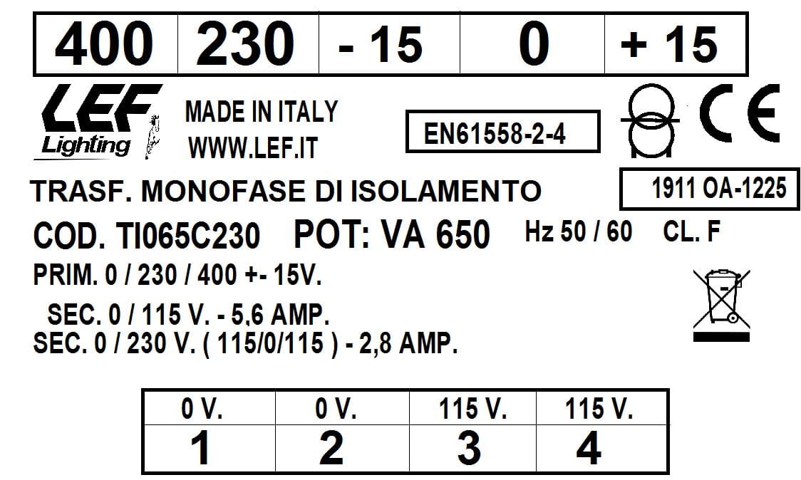 L.E.F. SRL - LEFTI065C230 T.M. 650VA 230.400V / 115?230V
