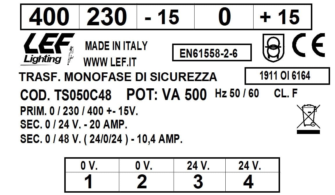 L.E.F. SRL - LEFTS050C48 T.M. 500VA 230.400V / 24?48V