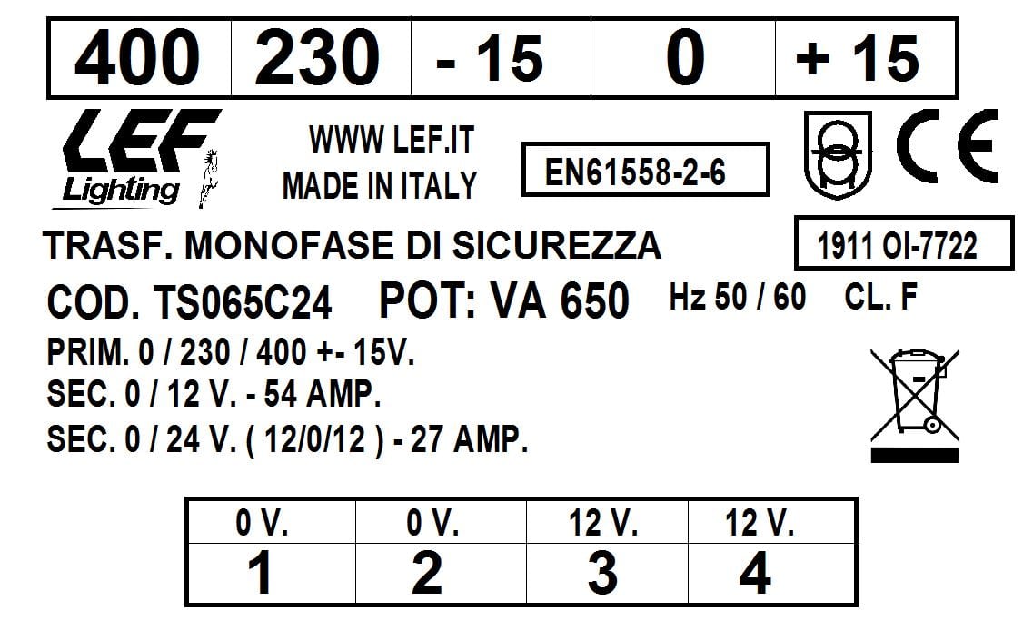 L.E.F. SRL - LEFTS065C24 T.M. 650VA 230.400V / 12?24V