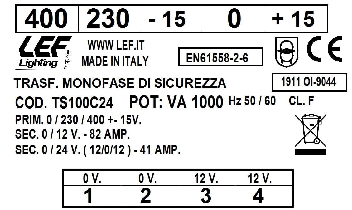 L.E.F. SRL - LEFTS100C24 T.M. 1000VA 230.400V / 12?24V