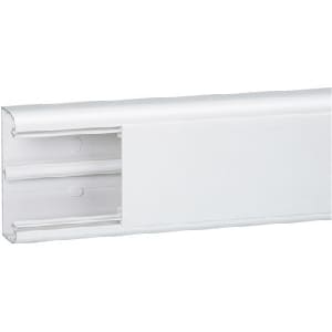 Minicanale in PVC bianco RAL 9010, fornito completo di coperchio montato. Conforme alla norma CEI 23.32