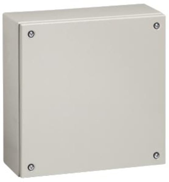 Cassette di derivazione metalliche 200 x 800 x 120 mm. Cassette in lamiera d’acciaio spessore 9/10um. Fissaggio del coperchio con viti antisfilamento. Verniciatura poliestere RAL 7035. Equipaggiate con 3 montanti verticali preforati Grado di protezione IP66 secondo EN 60529 e IK10 secondo EN 50102.