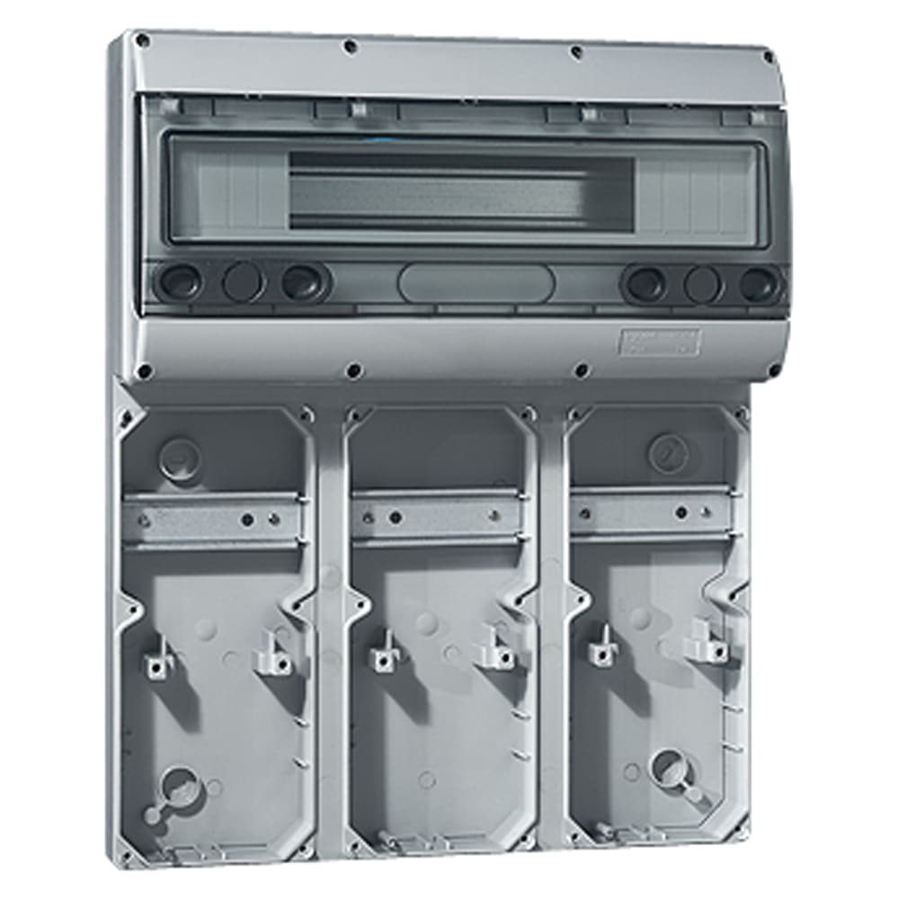 Base da parete per 9 prese da 16A o 3 prese intrerbloccate standard IP44/66, IK08, dimensioni (AxL): 501x405mm. Predisposta con guida DIN35 da 18+2 moduli.