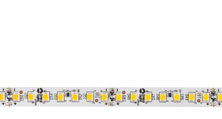 Led strip a singola emissione per applicazione indoor. La sorgente luminosa LED, di colore bianco caldo, con distribuzione luminosa General Lighting, è composta da 700 LED topled, con una CCT 3000 K ed un CRI 85; il flusso luminoso della sorgente è di4400 lm, con un'efficienza nominale di 122.2 lm/W.