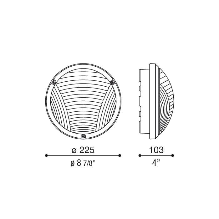 Adatto anche ad uso esterno. Base e diffusore in policarbonato. Guarnizione in silicone. Viti in acciaio inox A4. Predisposizione ingresso tubo rigido 16/20 mm. Lampade dim. max: E27 128 mm Ø 48 mm.