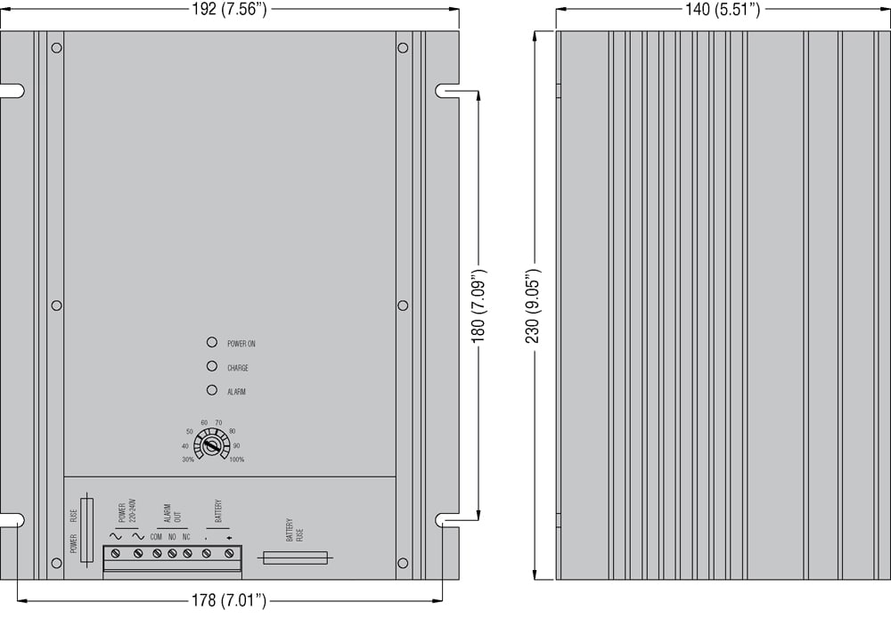 CARICA BATTERIE AUTOMATICO, LINEARE SERIE BCE, PER BATTERIE AL PIOMBO, 1 LIVELLO DI CARICA. USCITA 24VDC, 10A