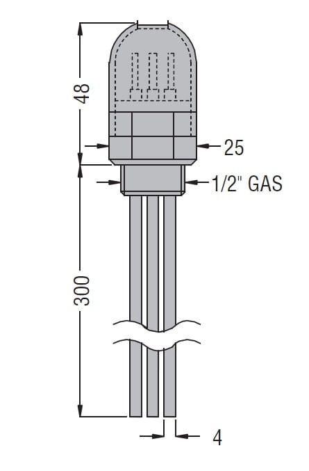 È una sonda di piccole dimensioni completo di tre elettrodi in acciaio AISI 304. È particolarmente adatto per piccoli recipienti dove vi siano condizioni di pressione fino a 2 bar massimo. Temperatura massima di impiego: +70°C Attacco filettato 1/2" GAS.Collegamento cavi: faston (capicorda forniti con sonda). Applicazioni: serbatoi e distributori automatici.