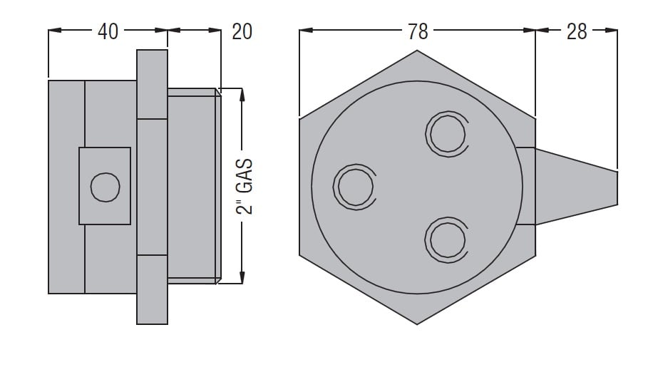 PORTAELETTRODI PS3S E' un portaelettrodi in termoindurente predisposto per tre elettrodi (elettrodi da ordinare separatamente) e completo di calotta coprimorsetti. Temperatura massima di impiego: +100°C Attacco filettato 2" GAS. Applicazioni: serbatoi.