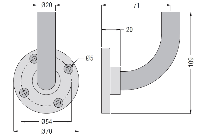 Base di fissaggio a parete, metallica