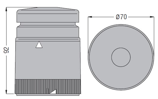 Modulo sonoro intermittente (90dB) IP54 in policarbonato. Connessione tramite morsetti a vite e serrafilo sezione massima 1,5 mm². Deve essere sempre montato per ultimo, in alto alla colonna.