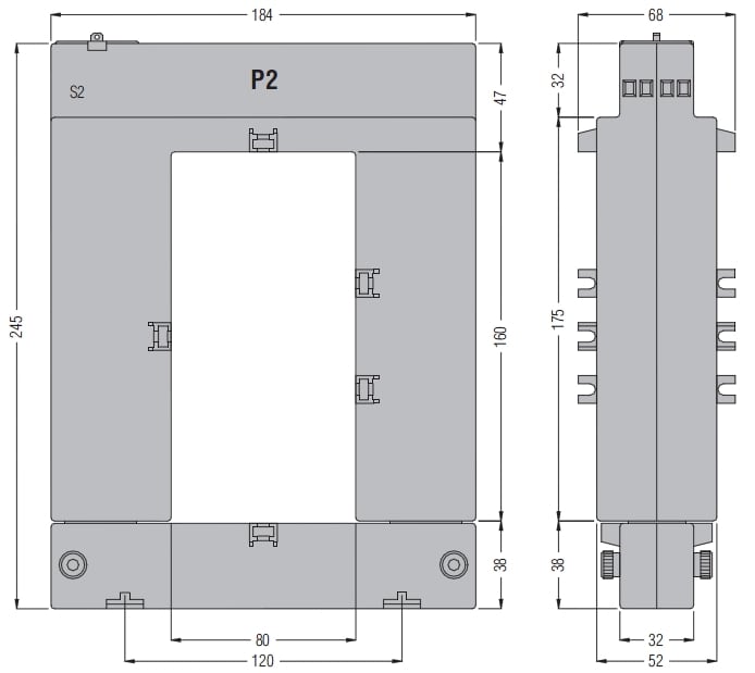 Trasformatore di corrente apribile, per barre da 80x160mm. I trasformatori di corrente serie DM vengono montati in un sistema elettrico per ridurre la corrente di linea ad un valore secondario di 5A compatibile con gli ingressi amperometrici dei multimetri digitali o dei relè di protezione. I DM...TA sono trasformatori di corrente senza avvolgimento primario e vengono normalmente utilizzati per alti valori di corrente primaria a partire da 250A.