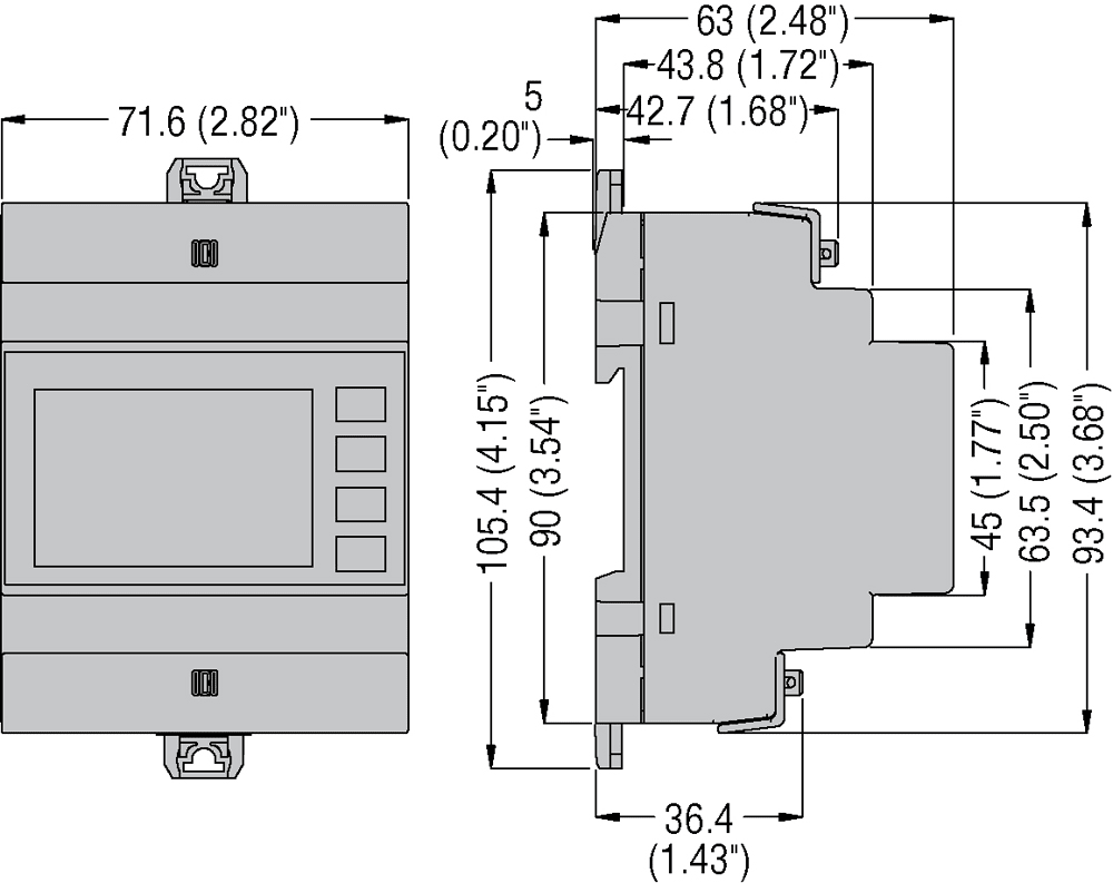 Multimetro modulare 4U con LCD a icone retroilluminato, alimentazione ausiliaria 100...240VAC / 115...250VDC, porta seriale RS485 integrata. MISURE E FUNZIONI: • tensione: di fase, concatenate e di sistema • corrente di fase (corrente di neutro calcolata) • potenze: apparenti, attive e reattive di fase e totali • fattore di potenza di fase e totale • frequenza • indicazione dei valori massimi, minimi e medi per tutte le misure • massima richiesta di potenza e di corrente (max demand) • asimmetria della tensione e della corrente • visualizzazione armoniche tensione e corrente fino al 15° ordine • distorsione armonica totale (THD tensioni e correnti) • contatori di energia attiva, reattiva, apparente parziali e totali (per fase e di sistema) • contaore totali e parziali programmabili • squilibrio delle potenze attive di fase