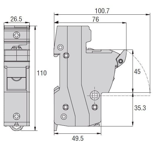 BASE PORTAFUSIBILI OMOLOGATA CURUS, PER FUSIBILI 14X51MM. CORRENTE NOMINALE 50A (690VAC), 1P. SENZA INDICATORE LUMINOSO. 1 MODULO