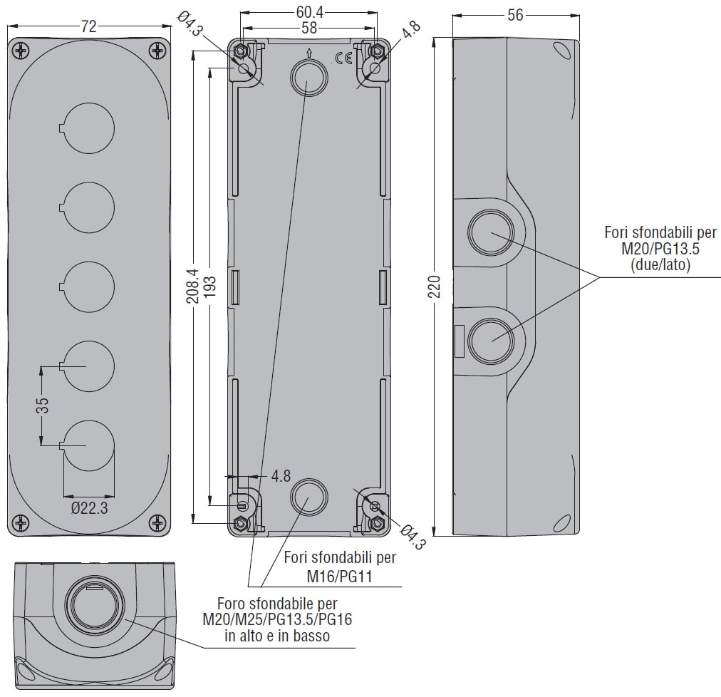 LOVATO - LOVLPZP5A8 PULSANTIERA GRIGIA 5 OPERATORI