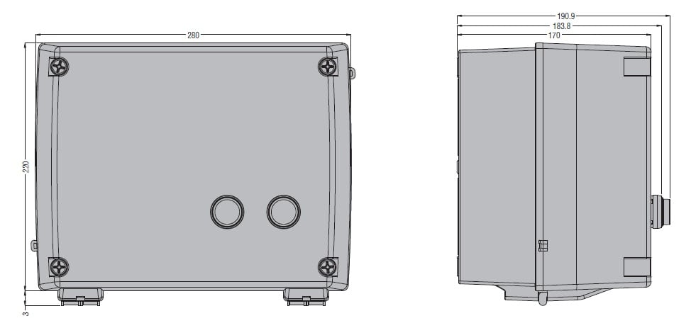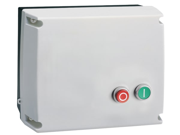 CONTENITORE PER AVVIATORE STELLA-TRIANGOLO; COMPLETO DI PULSANTI MARCIA E ARRESTO/RESET, PIASTRA METALLICA E PROFILATO OMEGA 35MM (IEC/EN 60715), PER AVVIATORI STELLA-TRIANGOLO DA 16 A 60A SU GUIDA DIN