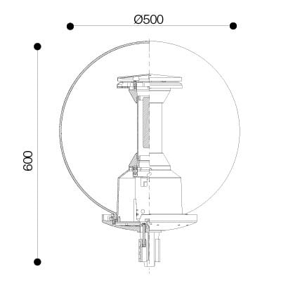 Sfera 500 Led IP65 Trasparente. Diffusore Polimetilmetacrilato (PMMA) trasparente per montaggio diritto. Base in tecnopolimero rinforzato. Sistema di bloccaggio ad espansione all’interno di pali Ø60mm e bracci Ø60mm. Utilizzo su palo e bracci Ø60mm. Viteria in acciaio inox A. Alimentazione elettronica. Colore: Tasparente. Caratteristiche cablaggio Led: Modulo Led circolare 50Led 21.7W luce natural (NW) 4000K, 3315lm, alimentatore integrato 220-240V 50-60Hz.