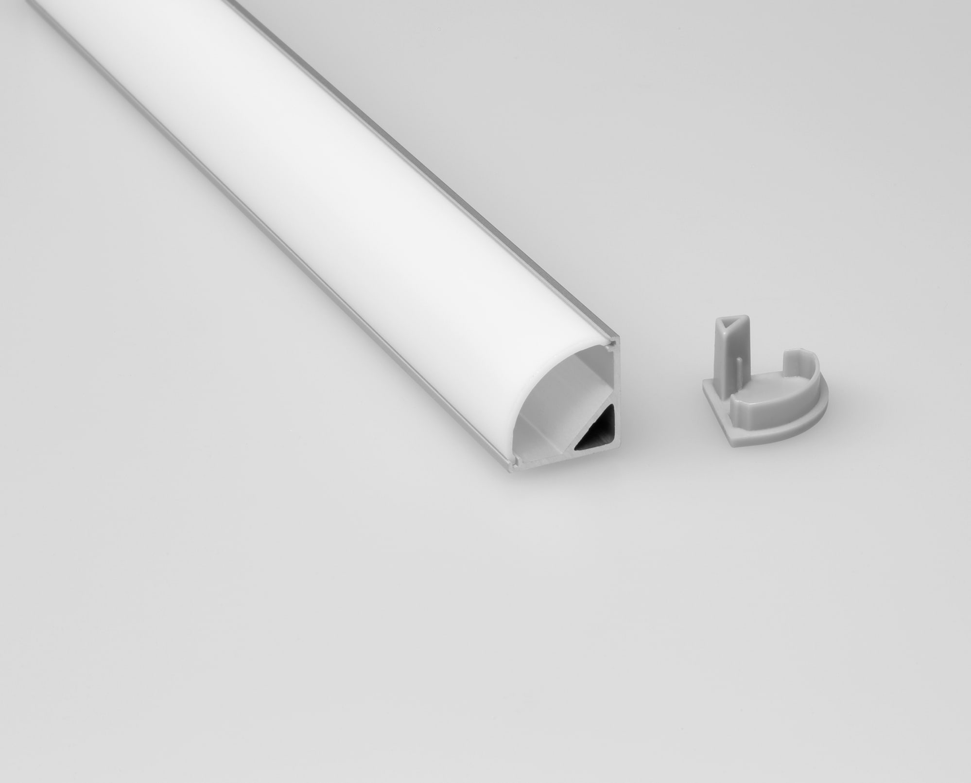 BARRA/STRIP/22 - Profilo in alluminio angolare per striscia LED con diffusore trasparente di 2m. Emissione luce a 45°. Tappi (4 pz) e clip di fissaggio (4 pz) inclusi.