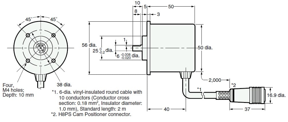 Assoluti diam. 50 mm plastica 12-24 Vc.c. Gray NPN risoluz. 256 cavo 2 m + connettore per H8PS