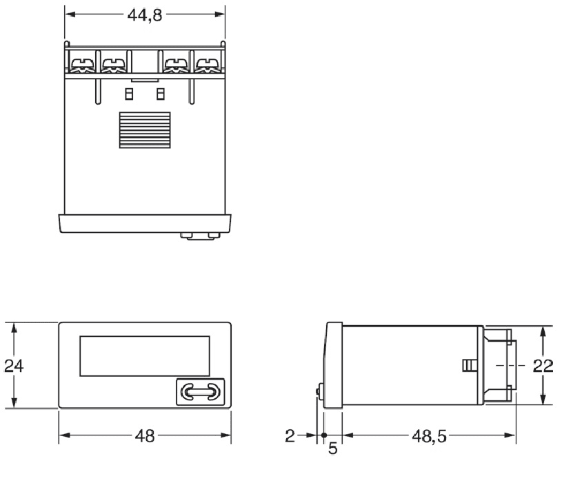Contaore, 1/32 DIN (48 x 24 mm), autoalim., LCD, 7 cifre, 999999.9h / 3999g23.9h, ingresso V CC, custodia nera