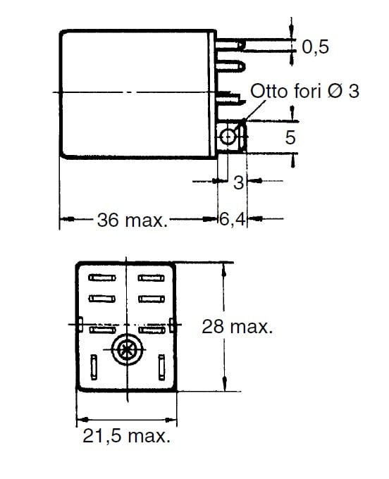 2 contatti in scambio, 10 A/220 Vc.a., terminali ad innesto, LED