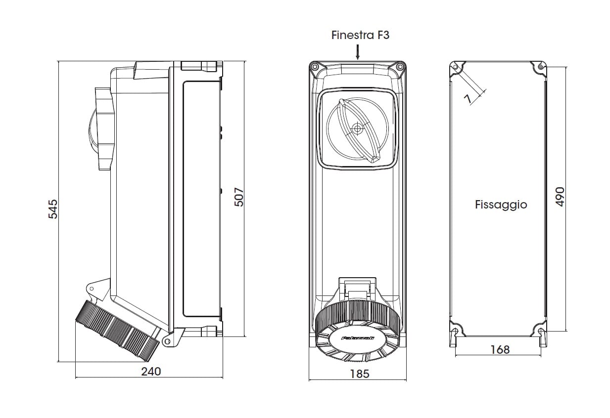 ALUPRES PRESA FISSA INTERBLOCCATA IN ALLUMINIO CON BASE PORTAFUSIBILI 3P+N+T 125A F3 120/208-144/250V 9H 50-60HZ FUSIBILI GR.00 >>IK10