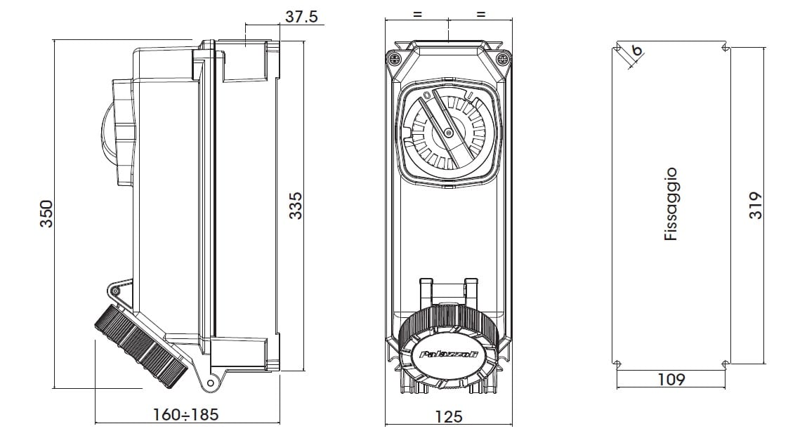 TAIS PRESA FISSA INTERBLOCCATA IN TERMOINDURENTE 3P+N+T 32A 220/380V 50HZ-250/440V 60HZ 50/60HZ 3H FUSIBILI DIII(E33) IP67 >IK10