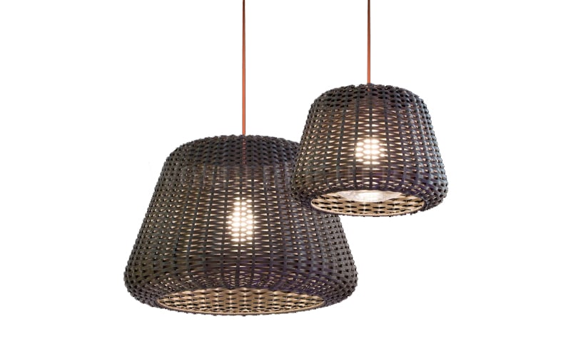 RALPH - Apparecchio di illuminazione per installazione a sospensione in ambienti interni, con emissione diretta e indiretta. Struttura in alluminio tornito con verniciatura poliacrilica in colore marrone metallizzato. Guarnizione in silicone. Diffusore in policarbonato trasparente. Paralume in rattan sintetico intrecciato a mano in colore marrone. Pressacavo M12 in ottone nichelato. Kit di sospensione con o-ring in silicone trasparente e moschettone. Cavo di alimentazione in poliuretano arancione di lunghezza 4,5m (177,2") con spina. Fornito completo di rosone accessorio per installazione a soffitto, con staffa di fissaggio in lamiera zincata e involucro in alluminio tornito con verniciatura poliacrilica in colore bianco opaco o marrone metallizzato. LEDretrofit bulb E27 Lmax 125mm - Ømax 65mm, max 23W Micro Twist E27, max 53W E27. Dimensione: D: 900 x H: 610 mm.
