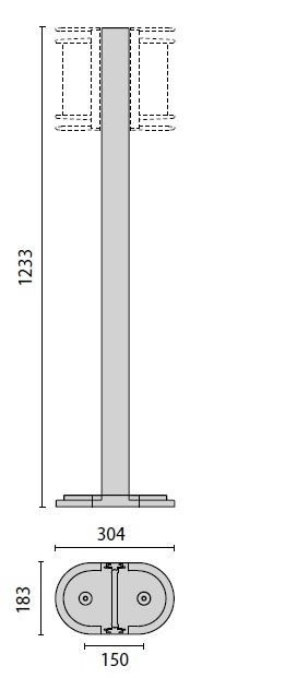 Palo 27 H1200 costituito da: Palo in alluminio estruso verniciato predisposto per alloggiare uno o due apparecchi. Base di fissaggio a terra in alluminio pressofuso verniciato. Scatola di derivazione in alluminio pressofuso con morsetto a 4 poli 4 mm2 predisposta per collegamento in cascata. Colore: Antracite.