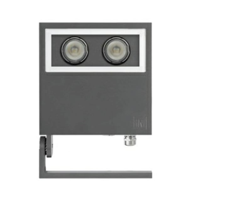 Proiettore LED per interni ed esterni, costituito da: Corpo e anello in alluminio pressofuso verniciato. Staffa di fissaggio, regolabile, in alluminio pressofuso verniciato. Diffusore in vetro piano extrachiaro temperato, serigrafato internamente. Otticacircolare. LED di alta potenza ad alto flusso luminoso di ultima generazione. Guarnizione in silicone. Viti di chiusura in acciaio inox. Pressacavo antistrappo M16x1.5 per cavi Ø 5 - Ø 10 mm. Disponibile picchetto in tecnopolimero per fissaggio a terra. Colore / RAL: AN-96 / Antracite metallizzato / Goffrato. Ottica: circolare intensiva 17°. Lampada: LED 18W 1880Lm 4000K.