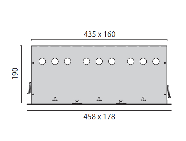 Alloggiamento (faretto a 3 testine). 458x178x190mm.