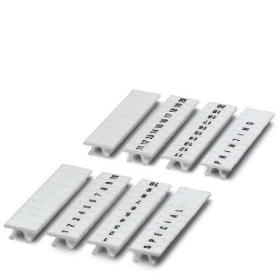 Unbeschriftete Beschriftungsstreifen können individuell über Plotter oder von Hand beschriftet werden. Das Zackband-System ZB bietet Kennzeichnung für Reihenklemmen und Elektronikmodule mit hohen Schildchennuten.