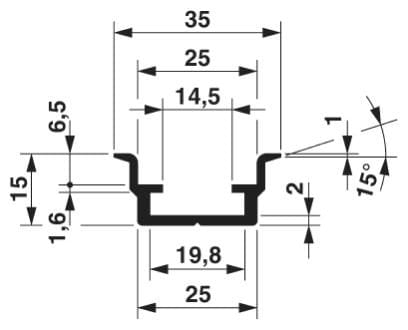 Die Tragschiene NS 35/15 AL ist für die Aufnahme von Gleitmuttern GLM ... ausgelegt.