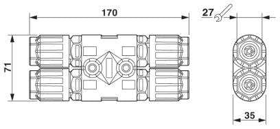 Innovativ und zeitsparend - QUICKON-Schnellanschluss für bis zu 80 % Zeitersparnis beim Anschließen vor Ort. Komfortabel: einfache und schnelle Konfektionierung ohne Spezialwerkzeug. Überaus robust: Gehäuse in den Schutzarten IP68/IP69K und IK07 für einen weiten Einsatzbereich. Sicherer Anschluss durch Polarisation gegen Fehlstecken und Fingerberührschutz nach DIN EN 0105. Flexibel und kompakt - durch die interne Verbindung der Anschlüsse sind die H- und T-Verteiler zum Abzweigen von Stammleitungen oder als Sternverteiler einsetzbar.