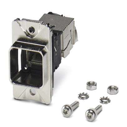 RJ45-Anbaurahmen, IP67, für Push-Pull-Verriegelung, Metall, für rechteckigen Montageausschnitt, mit Dichtung und Befestigungsschrauben, inkl. RJ45-Einsatz mit IDC-Kabelanschluss