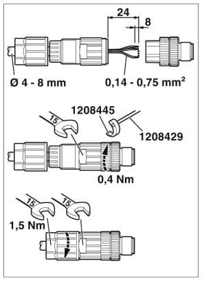 Anschließbarer Leiterquerschnitt feindrähtig mit Aderendhülse: