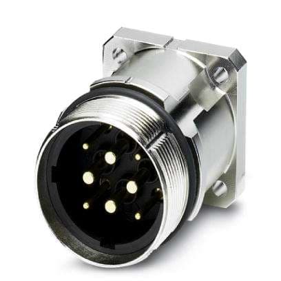 Gerätesteckverbinder, Vorderwand, gerade, Schraubverriegelung, M40, Polzahl: 4+3+PE, Kontaktart: Stift, Crimpanschluss, O-Ring axial, 4x Ø4,2, geschirmt: ja, Flanschmaß: 40 mm x 40 mm, Kabeldurchmesserbereich: 0 mm... 0 mm