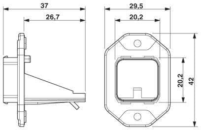 RJ45-Anbaurahmen, IP67, für Push-Pull Verriegelung, Kunststoff, mit Freenet-System, für rechteckigen Montageausschnitt, mit Dichtung, ohne Befestigungsschrauben