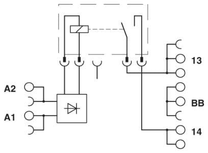 14 mm PLC- Grundklemme für hohe Einschaltströme mit Schraubanschluss, ohne Relais- oder Solid-State-Relaisbestückung, zur Montage auf Tragschiene NS 35/7,5, mit Lastrückleiteranschluss (BB), 1 Schließer, Eingangsspannung 24 V DC