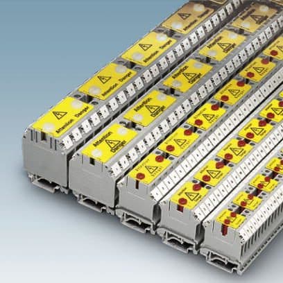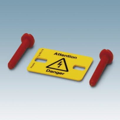 Warnschilder und Warnabdeckungen dienen der Abdeckung und Kenntlichmachung von Netzanschlussklemmen. Die Warnschilder verrasten in den Schrauben-, Betätigungsschächten der jeweiligen Klemme.