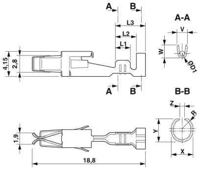 Modul-Buchsenkontakt, wird nach dem Ancrimpen des Leiters in das PCC oder HCC Steckergehäuse geschoben, für Leiter von 1,5 mm² ... 2,5 mm²