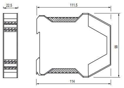 Modulo di sicurezza 2NO+1NC, categoria 4, per arresti di emergenza, controllo finecorsa per ripari mobili e sensori magnetici di sicurezza. Custodia in poliammide PA 66, autoestinguente V0 secondo UL 94. Terminali: Morsetti a vite. Alimentazione: 10...30Vdc