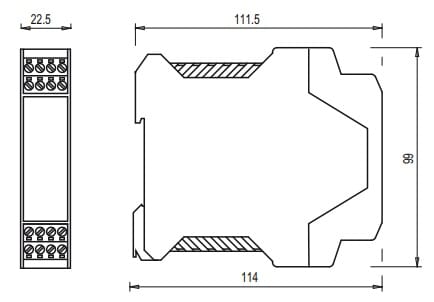 Modulo di sicurezza 3NO+1NC con start manuale o automatico, categoria 4, per arresti di emergenza, controllo finecorsa per ripari mobili, circuiti d'uscita a stato solido (es. barriere ottiche) e sensori magnetici di sicurezza. Custodia in poliammide PA 66, autoestinguente V0 secondo UL 94. Terminali: Connettori estraibili con morsetti a vite. Alimentazione: 24 Vac/dc.