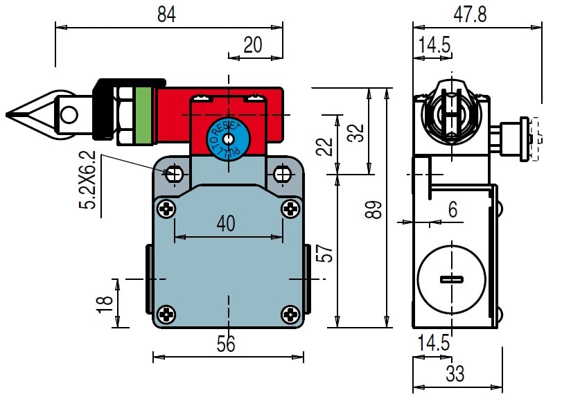 Questo interruttore di sicurezza viene installato su macchine o nastri trasportatori, rende possibile l'arresto di emergenza della macchina da qualsiasi punto di intervento manuale della fune.Dotato di funzione di autocontrollo, verifica costantemente ilsuo correntto funzionamento segnalando attraverso l'apertura dei contatti, un'eventuale allentamento o rottura della fune. L'interruttore mantiene i contatti aperti dopo l'azionamento anche se la fune viene rilasciata, fino al ripristino del reset. Custodia tipo FP in tecnopolimero rinforzato in fibra di vetro autoestinguente e antiurto a doppio isolamento.. Parametri di sicurezza fino a SIL 3/ PLe.